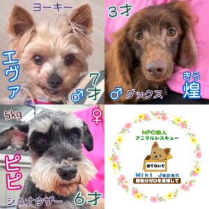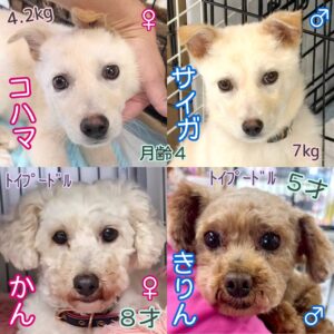 - 成犬は避妊去勢をしてからの譲渡になります。上記費用に別途手術費用がかかります。(3~5万円